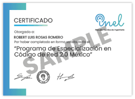 Al finalizar exitosamente este programa, Inel otorga un certificado de finalización por 50 horas cronológicas; y certificado de programas de acreditación IEEE 5 CEU o 50 PDH.